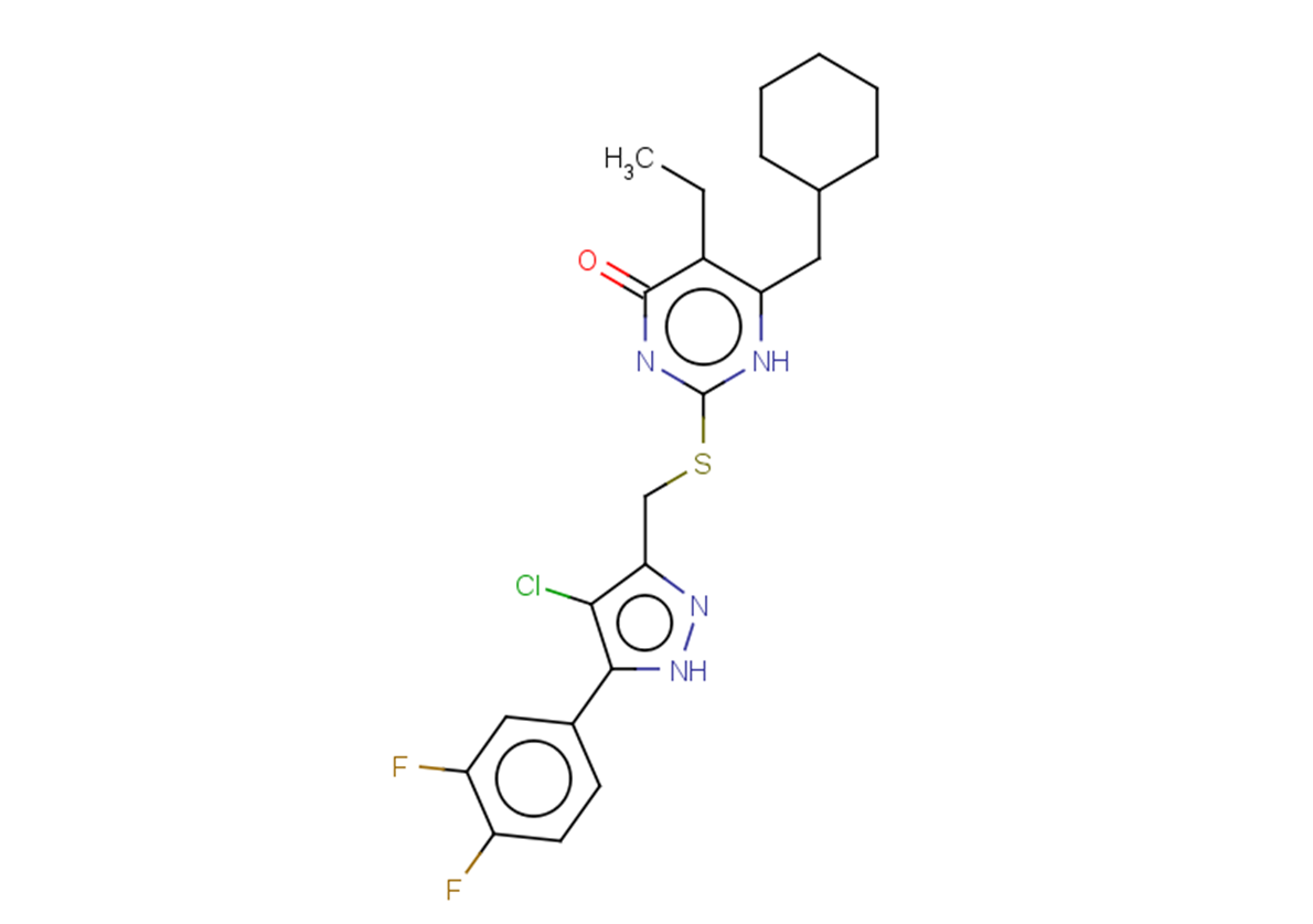 Denv-in-5 is an effective and selective dengue virus (DENV) inhibitor with EC50 values of 1.47, 9.23, 7.08, 8.91 μM for denV-I-IV and 0.1512 μM for HIV-1IIIB.
