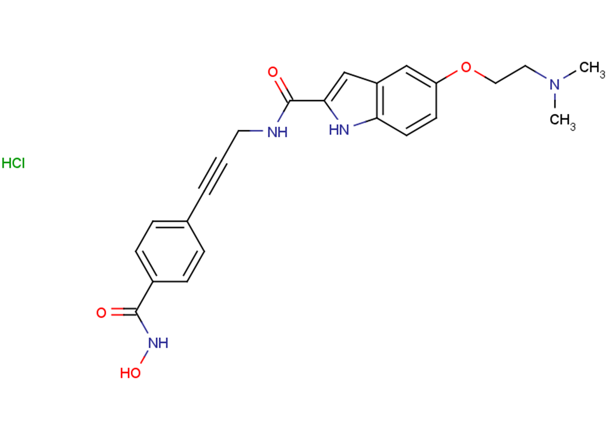 CRA-026440 hydrochloride is a potent and broad-spectrum HDAC inhibitor. CRA-026440 hydrochloride exhibits Ki values against recombinant HDAC isoenzymes HDAC1, HDAC2, HDAC3, HDAC6, HDAC8, and HDAC10 are 4 nM, 14 nM, 11 nM, 15 nM, 7 nM, and 20 nM, respectively. CRA-026440 hydrochloride exhibits antitumor and antiangiogenic activities.